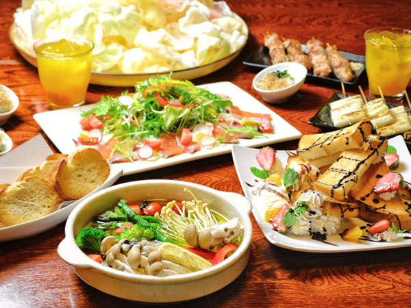 楽しいガールズトークも弾む座敷や掘りごたつの個室を完備!新登場した女子会セットは、旬野菜のアヒージョや、新鮮魚介のカルパッチョなど全7品。150分ゆったり飲み放題付きで2,800円~。スパークリングワイン・ポールスターやゆず、桃などの果実酒が飲み放題なのも嬉しいポイント。