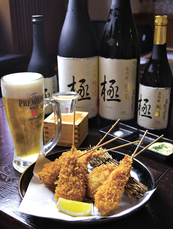 上富良野産の豚ロースや網走産の帆立など道内産の食材をふんだんに使用し、サクサクに揚げた6本の串揚げは人気料理の1つ。特製ダレをつけて豪快にかぶりついてみて。落ち着いた雰囲気の店内には、2名様から利用できる個室の特別室もあります。