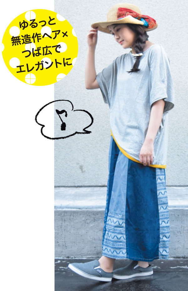 ワイドパンツやスカーチョなどとカジュアルに合わせて。髪を下ろしたダウンスタイルでも決まる優秀キャスケット