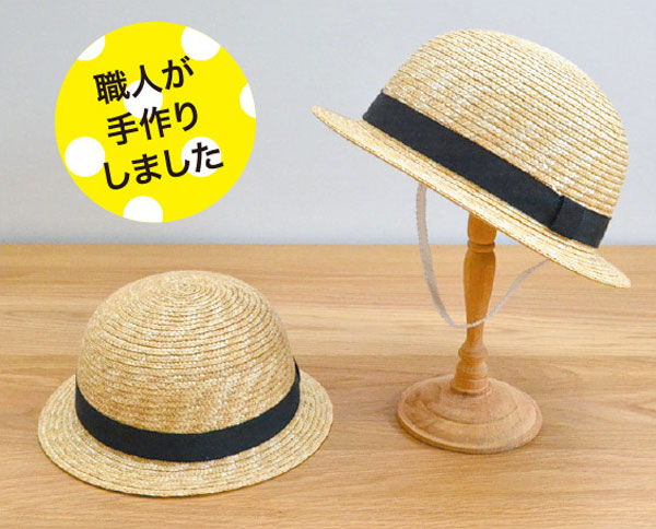 麦わら帽子の産地として有名な埼玉県春日部市の工房で、職人が愛情込めて一点ずつ手作り。麦わらは通気性がよいので熱中症対策にも効果的。子どもサイズは2種類あり、すべてあご紐つき