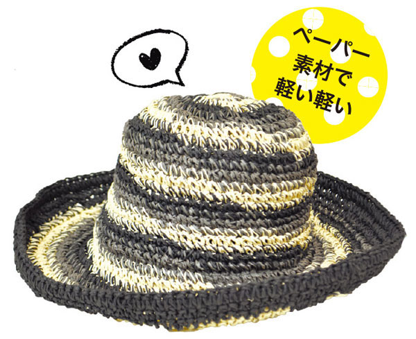 しましま模様も、こんなモノトーンなら大人っぽい。かなり深めに被れるから日よけ効果もあります