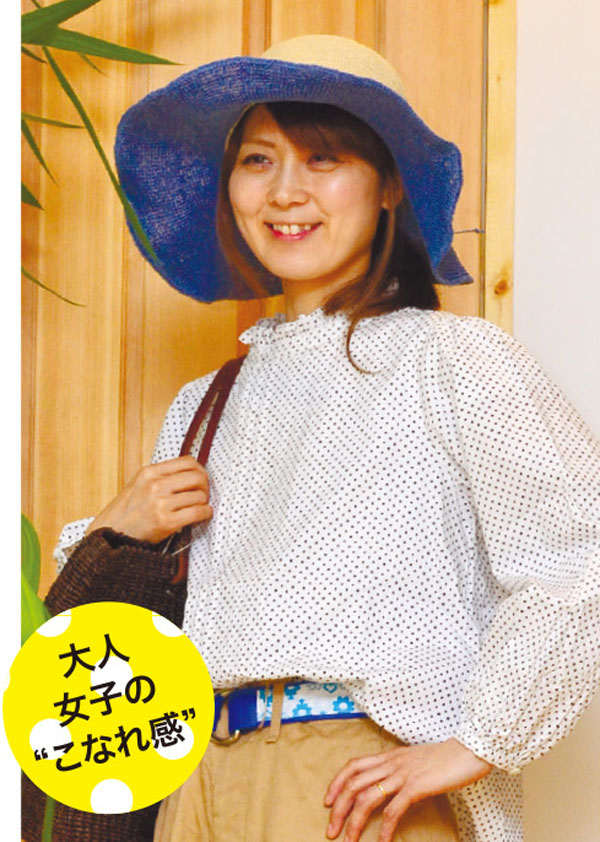 ワンピースと合わせるのがおすすめ。少し斜めにかぶってフェミニンな印象にして。ちょこんと小さな金色のバッジがアクセントです
