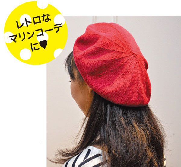 コットン100%で編み上げた夏用ベレー。デニムにもスカートにも、プラスワンが不思議とマッチ。おうちでも洗濯できます