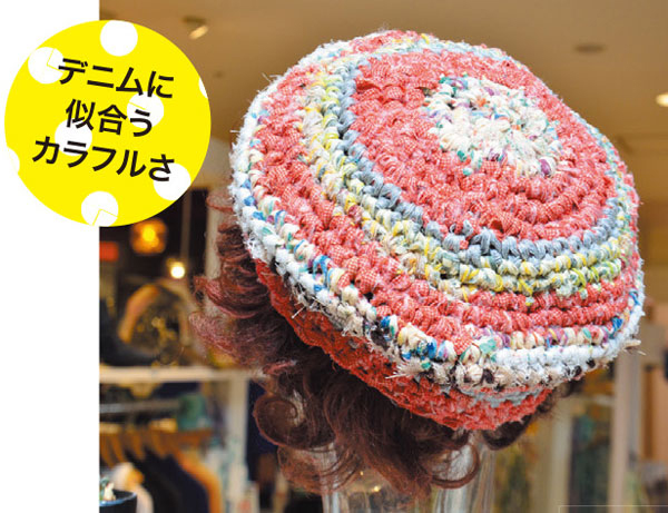 サラッとした風合いが夏らしい、裂き編みで作ったカラフルなコットンベレー。1点もので、外しアイテムとしてもハマります