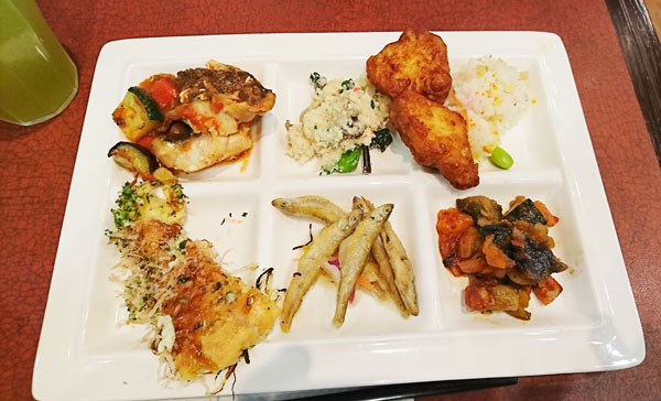 特筆すべきはステーキ。随時焼きたてを提供してくれる。和食ゾーンにはえび天を筆頭に、高級食材が目白押し。ホタテ貝柱のフライは秀逸。職人が握る寿司はシャリがフワフワ。意外だったのがカレーである。お子様コーナーの近くにあったので期待せずに盛ってみたが、まぁ絶品。芋や人参、ヤングコーンが大振りなまま煮込まれ、まさしく「ゴロゴロ野菜のカレー」。野菜の旨みが溶け込んだまろやかなルーがいい。