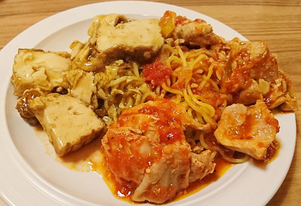 メニューをいろいろ組み合わせてオリジナルの味に挑戦したくなる店だ。まずは、固焼きソバの麺。厚揚げのあんかけとチキンのバスク風トマト煮をハーフ&ハーフで、和洋中の合作焼きそばに。それぞれはとてもうまいが、酸味の効いたトマトはちょっとアレか・・次回リベンジ!続いて丼もの。竹の子と茄子の天ぷらで天丼を、焼きたてのステーキをたっぷり載せてステーキ丼も。成功だ。