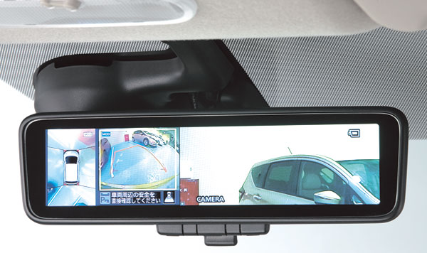車両後部に装着した高解像度カメラにより、同乗者や荷物などで視界がさえぎられがちな後方の状況を、クリアな画像でルームミラーに映し出します。夜間でもカメラの感度をアップさせることで明るい後方視界を確保。さらに雨天時や夕暮れ時で見えづらい状況でも視界を得られるので、後方確認がぐっとしやすくなります。