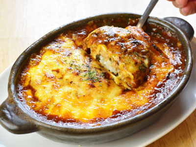 看板犬店長の“えんにち”が出迎えてくれるカフェ。こってり濃厚かつジューシーなハンバーグドリアは『お手頃なのにボリューム満点』とお客さんからも定評があります。でも、主役のハンバーグは一体どこ・・・?女性の手のひらサイズはある、ずっしりとしたハンバーグを覆うのはたっぷりのチーズ。手づくりのデミグラスソースとチーズ、ハンバーグのバランスの良さに、思わず顔がほころびます。プラス100円でドリンク、プラス150円でドリンクとミニサラダ付きのセットにできます。