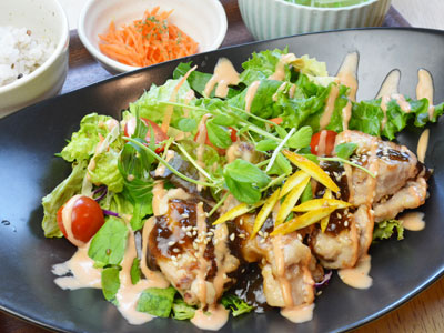 - チキンのオレンジバルサミコソースのサラダ仕立て1,188円(ご飯、小鉢、スープ付き)