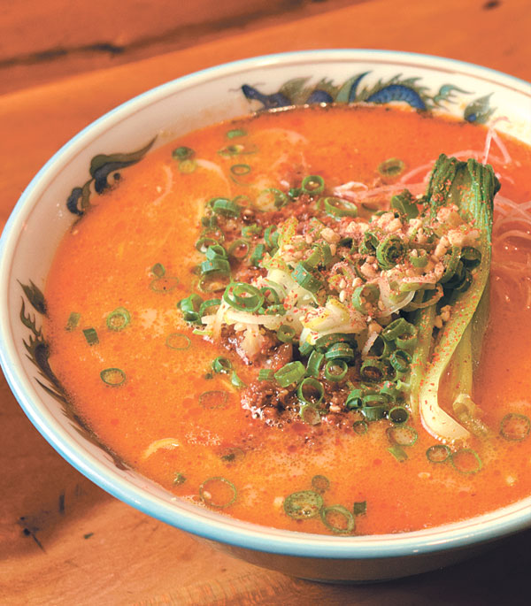 朝5時まで営業しているサンロク近くの定食屋。自家製ラー油と5種類の味噌をブレンドしたまろやかなスープと、香ばしい肉味噌が特徴の一品。麺をすするたび漂う胡麻の香りに箸が止まりません。辛さは3段階から選べます。