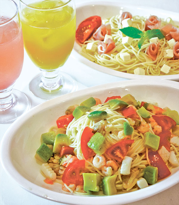 - シーフードとアボカドの冷製パスタ(写真手前1,100円)