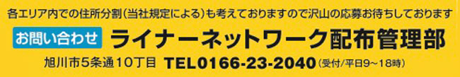お問合わせはライナーネットワーク配布管理部、電話0166-23-2040まで