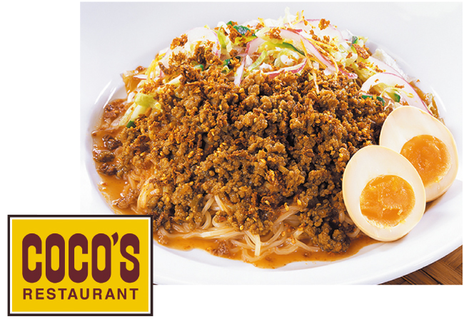 中華料理でよく使用されるピーシェン豆板醤や朝天唐辛子、花椒を使い、口に入れた直後から辛さが続くように仕上げたスープと、麻辣醤や山椒などで味付けした豚肉ミンチを合わせた“ココス史上最も辛い”メニュー!思わず汗が吹き出してしまう、しびれるような辛さを堪能できますよ。