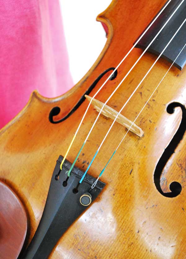 - よーく見ると、4本の弦の太さが違います!太い弦は低音、細い弦は高音
