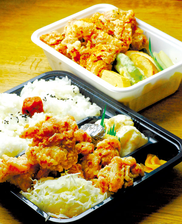人気の特撰ザンギをどーんと盛り付けた、ボリュームたっぷりの持ち帰り弁当(700円~)&丼(600円~)。知床鶏のもも肉を、旭川産米粉入りの衣でカリッと揚げたザンギは、塩、香味にんにく、レモン胡椒など全9種。まとまった数の場合、要予約。