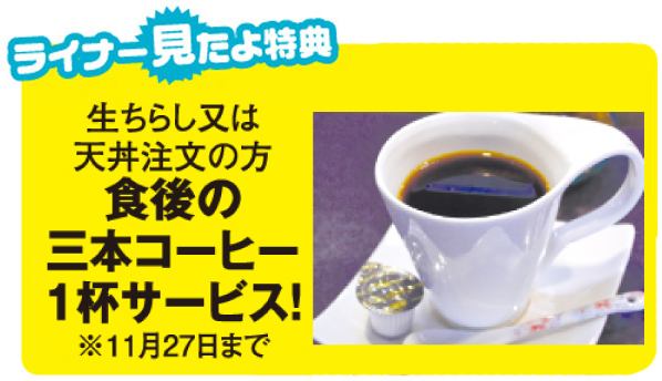 増毛産の甘エビや厚岸・根室産の帆立など、できるだけ道産の食材を使った生チラシは、汁物付きで630円。1日15食限定で早い者勝ち!半日弱火で煮詰める特製ダレの天丼(630円)もオススメです。