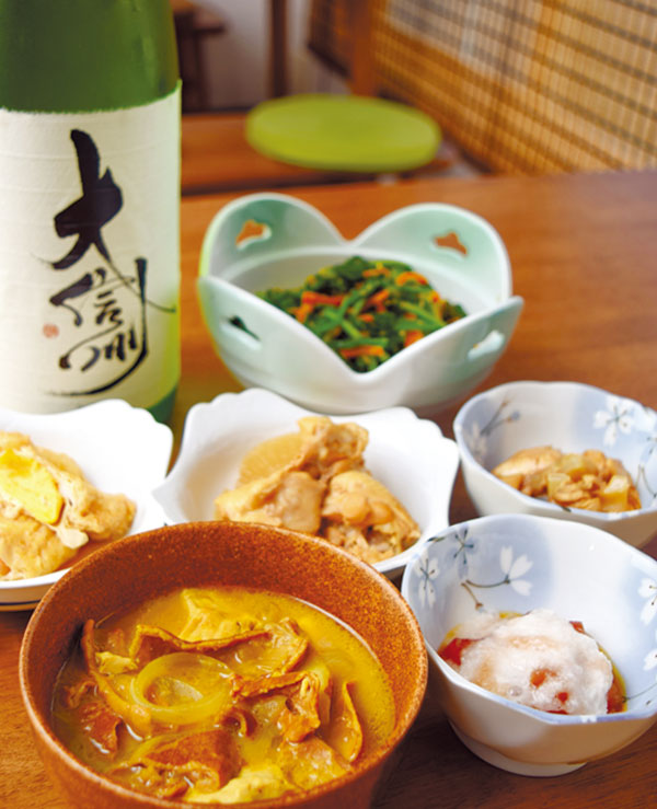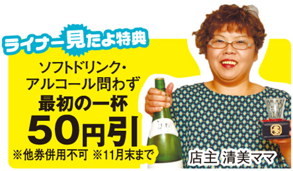 民家を改装したオープンしたばかりの居酒屋。日替わりのおばんざいは1品で400円、5品を少しずつで800円。柔らかく煮込んだ「ホルモン煮カレー風味」は苦手な人でも食べやすく、清美ママのおすすめです。