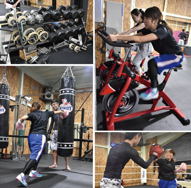 もちろん男性も通えますが、「運動不足やダイエットに悩む女性にこそ利用して欲しい」と、ボクシング経験者の多田昌史さんがボクササイズやキックボクシングを指導します。「初めての人にはなわとびやエアロバイクで体力を見せてもらって個別メニューを作ります。徐々に体が動くようになってきたら運動量を増やしていくので、無理なく続けられるはず」。さらに「はじめは翌日寝たきりになる人も多いですが(笑)、週2~3日通ってくれれば、数ヶ月でダイエットさせられる自信はありますよ」と頼もしい一言を聞かせてくれました。