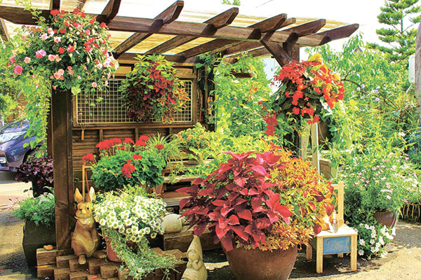 - プランター・ガーデニング部門の金賞受賞作品。町では花苗を町民に無料配布しています。今年は色別で25種類ほど、約2万鉢が町内の花壇やプランターを彩りました