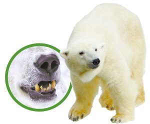 トラと同じ肉食獣なので、歯の生え方はトラに似ている。アザラシを手で捕まえたら、こちらもとりあえずかじって丸呑みするヤツ。