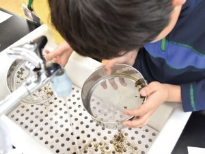 「体験しておもしろいって感じたら大成功!」と旭川市科学館「サイパル」の岩石学担当学芸員・向井正幸さん。科学館が主催する「理科クラブ」の先日の活動では、沼田町の泥から500万年前の有孔虫の化石を取り出して観察する実験が行われていました。