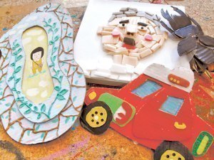 - グルーガンで模様づけした作品や、カラースポンジで仕上げた立体作品