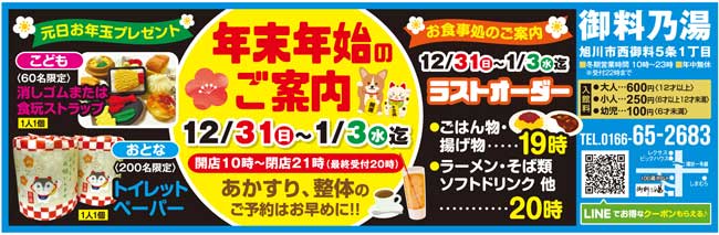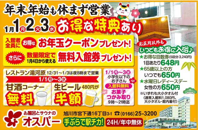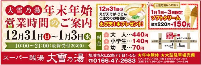 旭川近郊店の初売・福袋・セール情報まとめ - 今年もライナーでは、旭川市と近郊にある大型店の初売りや福袋の情報をまとめました。年末年始の変則的な営業時間などについても記載していますので、お役立てください!... (12月28日)