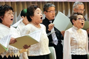 会の初演は、設立翌年の8月6日。広島原爆の日に、世界平和を願ったこの歌を歌いました。「日本では年末の定番曲のようにいわれますが、この時期に歌うことで、より日本らしい表現ができると気付いたんです」。その後も毎年、終戦記念日のある8月に、演奏会を開くことに決めました。これまでに、市内の北日本フィルや陸上自衛隊第2師団、目が不自由な弾き振りのピアニスト・宮崎剛さん、早稲田大の男声合唱団グリークラブなどと共演を重ねています。