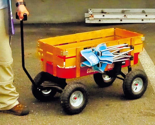 - これが相棒のカート。触れ合う人へのお礼の品(町自慢のお米や三升漬け、その他もろもろ)を載せて、あなたのまちへ伺いますよ~