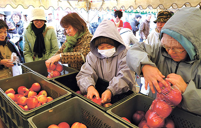 生産者が直接販売する「アップルフェスタ」は、例年約15品種のりんごが並び、全て試食可能。それぞれの特徴やおいしい食べ方をその場で教えてもらえるのも好評です。大サービスのりんご詰め放題や、皮の長さを競うりんごの皮むき大会も楽しいですよ!