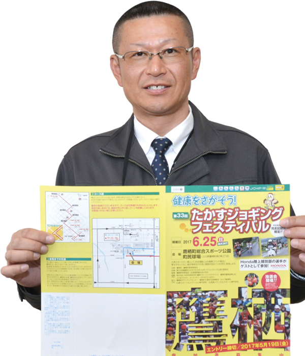 ただいま6月25日(日)に実施する「健康をさがそう!たかすジョギングフェスティバル」の出場者を募集しています。