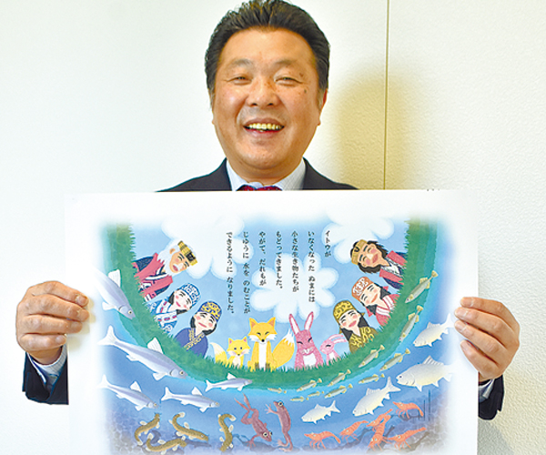 自作の「しっぽ沼」が、アイヌ文化振興・研究推進機構の創作絵本コンテストで最優秀賞をいただきました。おなかを空かせた大魚のイトウを恐れて誰も沼に近づけず困っていたところに、村長が機転を利かせてある一言を告げます。するとイトウが自分のしっぽを…というストーリー。資源を守り、自然の恵みを分け合うアイヌ民族の精神を伝えたくて考えました。
