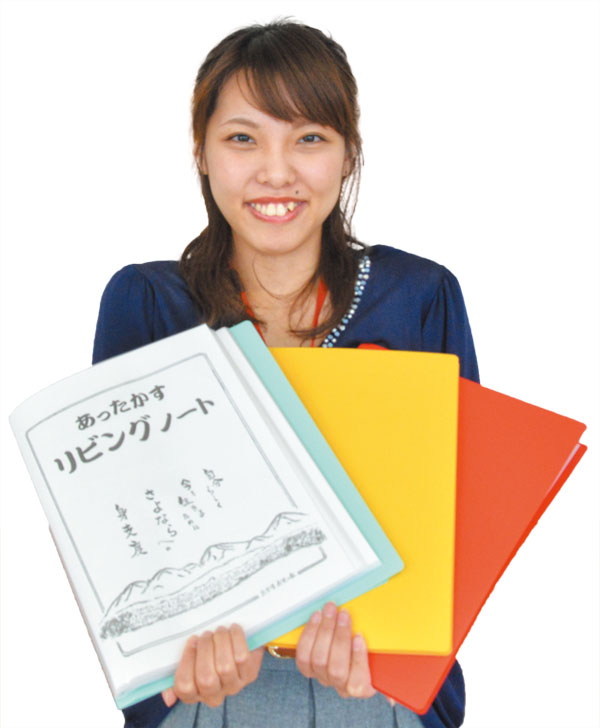 バインダー式ノート全25ページに延命療法や尊厳死などのほか、夢や思い出を書き記す箇所があります。「使い方は自由で、すべてを埋める必要はありません。自分史として楽しんだり、写真をファイルして楽しんだりするのもいいかも」と編集に携わった「たかすおせっ会」の坂根さん。話題にしづらい自分の最期について、少し肩の力を抜いて家族と話し合えるよう、このノートが手助けしてくれそうですね。