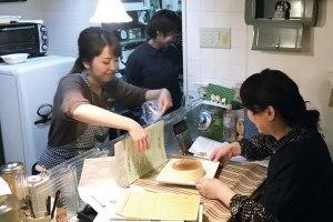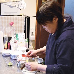 日替り惣菜やサンデーなどのデザートを販売する小さなお店。女子ウケをひたすら考えた末に思いついたのが、カラフルなお汁粉です。白玉粉に紫芋や抹茶のパウダーを練り込み、フルーツを添えて鮮やかに。きっとお汁粉の餡が残るから、アイスにかけて食べてもらおうとアイデアを出し合いました。※1日5食限定
