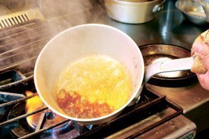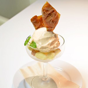 一番苦労したのはなんと言ってもアイス作り!シェフの昔のレシピをもとに作り始めたは良いものの、当時よりもキャラメル感の強い濃厚なアイスにするべくアレンジを加えると、なかなか上手く固まらず…。生クリームやキャラメルの量を微調整してベストな状態を模索しました。トッピングも侮るなかれ。キャラメルでたっぷりのアーモンドをコーティングした自家製のヌガティーヌが、食べ応えもありいい仕事をしています。ライナースタッフの大のお気に入りです♡