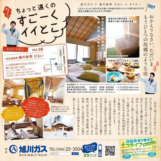 - ちょっと遠くのすごーくイイとこvol.8 旭川ガス×森の旅亭 びえい×ライナー