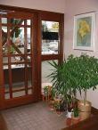 観葉植物をかざり、明るいエントランスです。