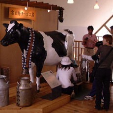 - 白樺の木々にかこまれた自然豊かなチーズ工房ではガラス越しにチーズの製造室や熟成庫を見学することができます。2階の直販コーナーにはチーズの試食コーナーがありチーズをはじめチーズ工房で製造したチーズ、牛乳、バターを使用した菓子類などを販売しています。ほかにも牛の模型での乳搾り体験やチーズの歴史コーナー、チーズ職人になれる記念撮影コーナーなどがありお子様から大人の方まで楽しめる工房です。