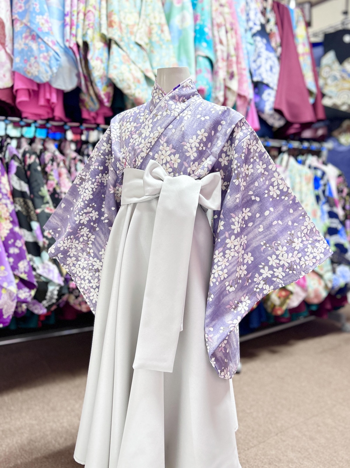 - 着物ドレス&袴風スカート くすみ紫×グレー