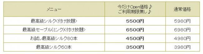 ※80本・60本のミンクのお値段はシルクのお値段の+500円となります。