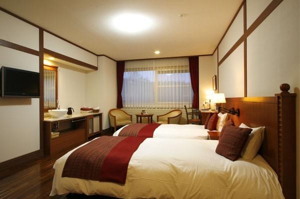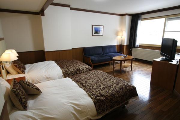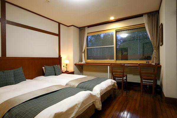 最上階にある、屋根の傾斜を生かした 客室です。ダブルルームとコネクティングルームとなります。ゆったり森を眺めながらお過ごしいただけます。バス・ウォシュレットトイレつきです。