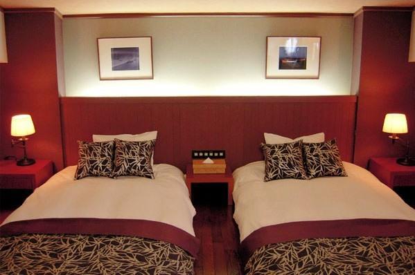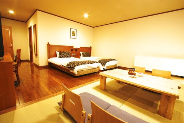 ベッド2台と、畳2帖スペース(京畳4帖)に布団2組で4名様までお泊り頂けます。窓際にはベンチシートがございます。バス・ウォシュレットトイレつきです。