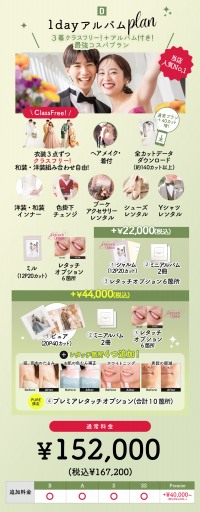 ②アルバムグレードアップ料金¥22,000が→¥0※1Dayアルバムプラン限定