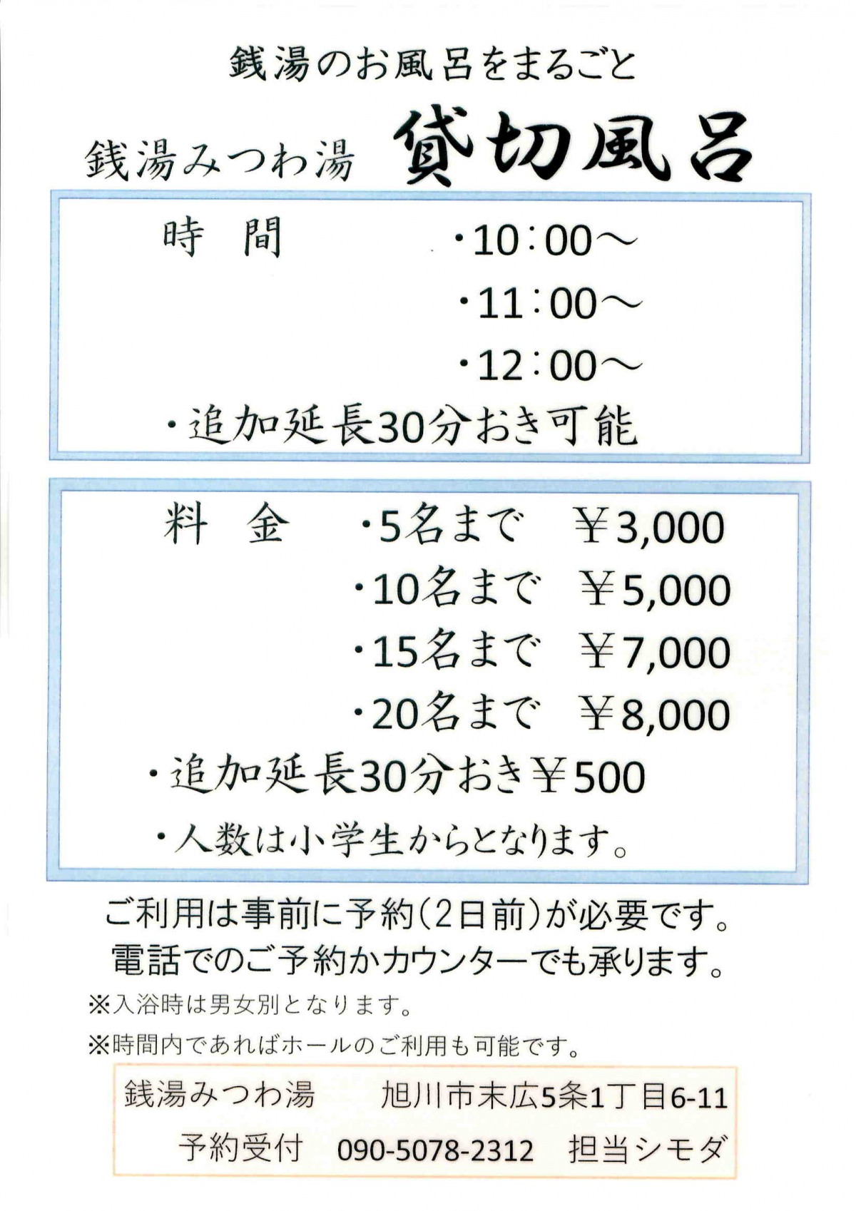銭湯まるごと時間限定「貸切風呂」有り。