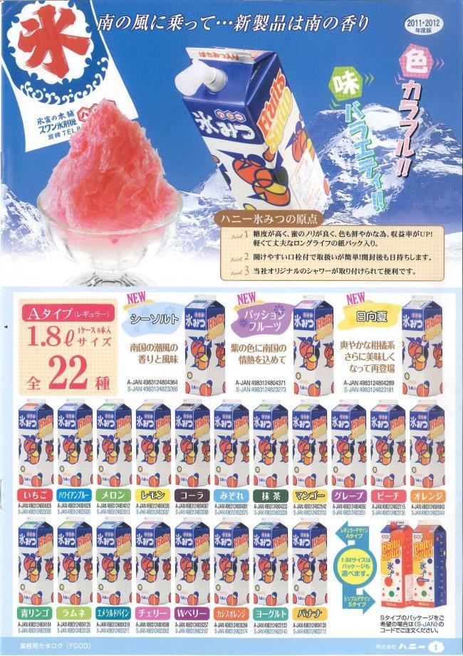 1Lのサイズは、いちご・メロン・ハワイアン・レモン・マンゴーの5種類です。