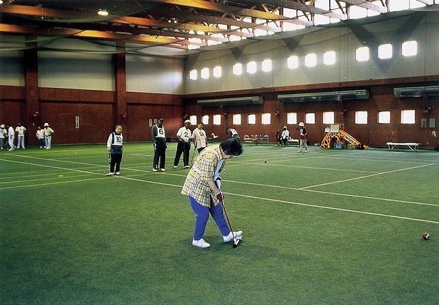 この体育館は、床がフローリングではなく、砂入人工芝を敷き詰めた特徴ある体育館です。
