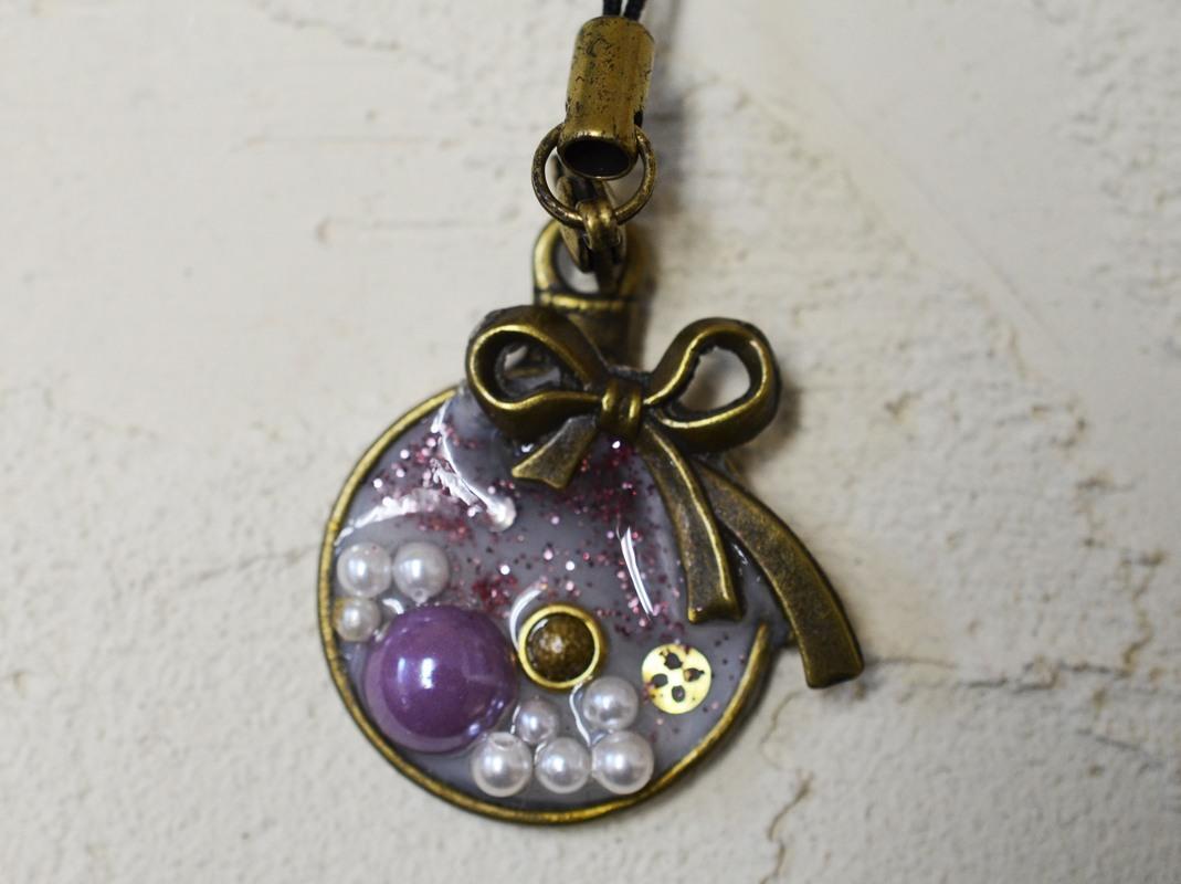 余った四つ編み紐を使って、お揃いのストラップも製作します。