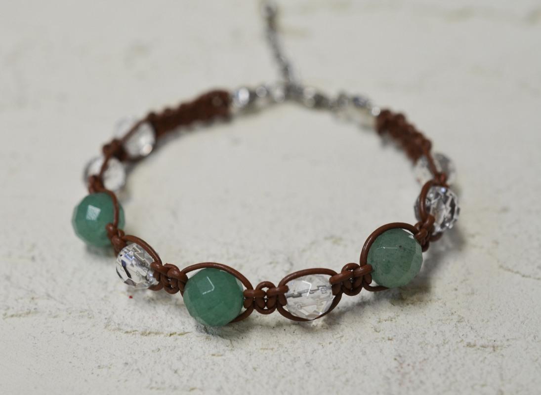 火曜日定休約50種類の天然石(パワーストーン)を使用し、革紐で編込みナチュラルテイストのブレスレットを作製します。