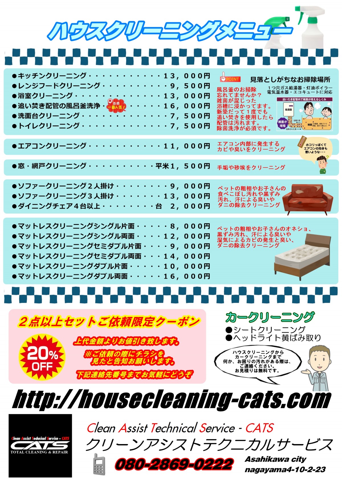 - ハウスクリーニングをリーズナブルな価格で対応します。