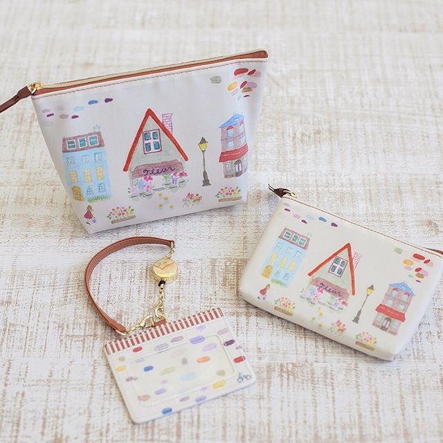 - ママイクコのために描きおろしてもらったやさしい水彩イラストがキュートな化粧ポーチ・ティッシュポーチ・カードケースです。